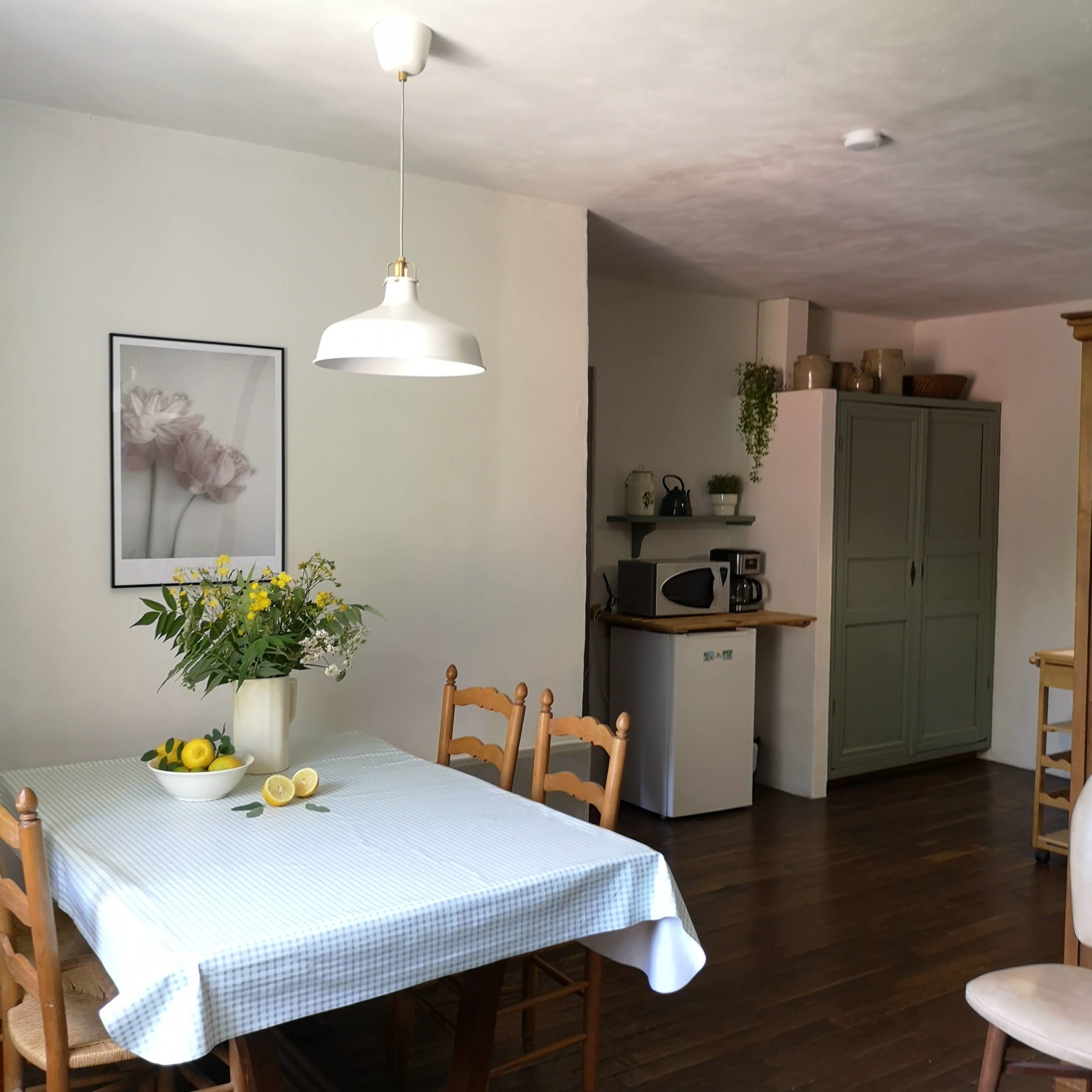 Ce gîte, situé au même étage que les chambres d'hôtes, idéal pour une famille de cinq, est un joli petit appartement décoré avec goût.